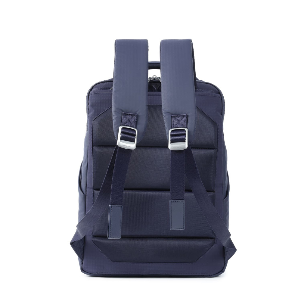 Самый большой рюкзак в ассортименте коллекции на каждый день, изготовлен из переработанной ткани в сочетании с эко-кожей. Оснащен двумя основными отделами на молнии, где можно разместить ноутбук 15.6", планшет и документы формата А4, также присутствует карман на молнии с RFID-защитой. Молния на отделе с ноутбуком, предусматривает возможность разместить навесной замок для гарантии дополнительной безопасности. карманы на передней части изделия для вещей первой необходимости.