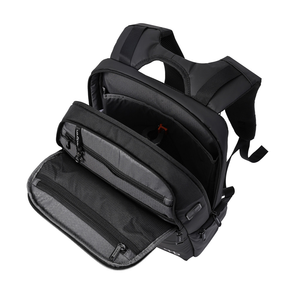 Продукт виготовлений з перероблених матеріалів з водовідштовхувальним покриттям. Рюкзак ідеально підходить для щоденного використання. Оснащений містким відділенням в якому є відділ для ноутбука 15.4" і документів формату А4. У зовнішній кишені є внутрішній відділ для Power Bank з USB-портом, міні-офіс і кишеня з RFID-захистом від шахрайства. Також, є бічні кишені для парасольки, пляшки і дрібниць. На плечових лямках розташована грудна стяжка, яку можна регулювати по висоті, що дозволить лямкам бути зафіксованими і не перешкоджати Вашим рухам. Рюкзак тримає форму, має якісну фурнітуру і стильний дизайн.