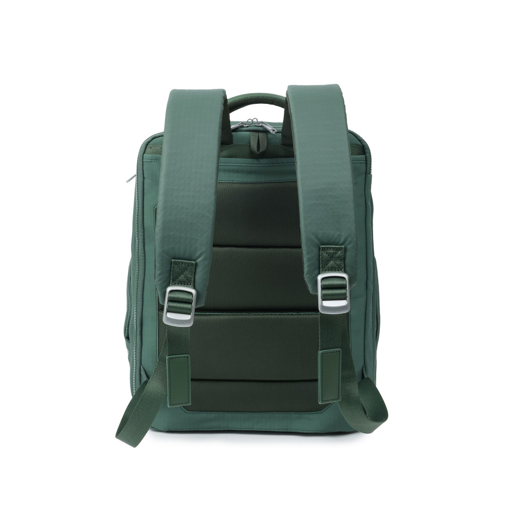Найкращий рюкзак для подорожей: достатньо вмісткий, щоб носити необхідні речі для бізнесу та подорожей, але все ще досить малий для суворих обмежень авіакомпаній для ручної поклажі. Туристичний рюкзак виготовлений ​​з переробленої тканини в поєднанні з еко-шкірою. Оснащений двома основними відділими на блискавці, де в одному з відділів можна розмістити ноутбук 15.6", планшет та документи формату А4, також присутня кишеня на блискавці з RFID-захистом. Другий відділ призначений для особистих речей з сітчастими перетинками, та можливістю збільшити об'єм завдяки розширенню. Блискавка на відділі з ноутбуком, передбачає можливість розмістити навісний замок для гарантування додаткової безпеки цінних речей. Бокові кишені для пляшки, парасольки та дрібних речей, також дві кишені на передній частині виробу для речей першої необхідності. На задній частині виробу м'яка спинка та плечові ремені, кишеня для зберігання дощовика, також планка для фіксації на телескопічну ручку валізи, що безумовно полегшує пересування під час подорожей.
