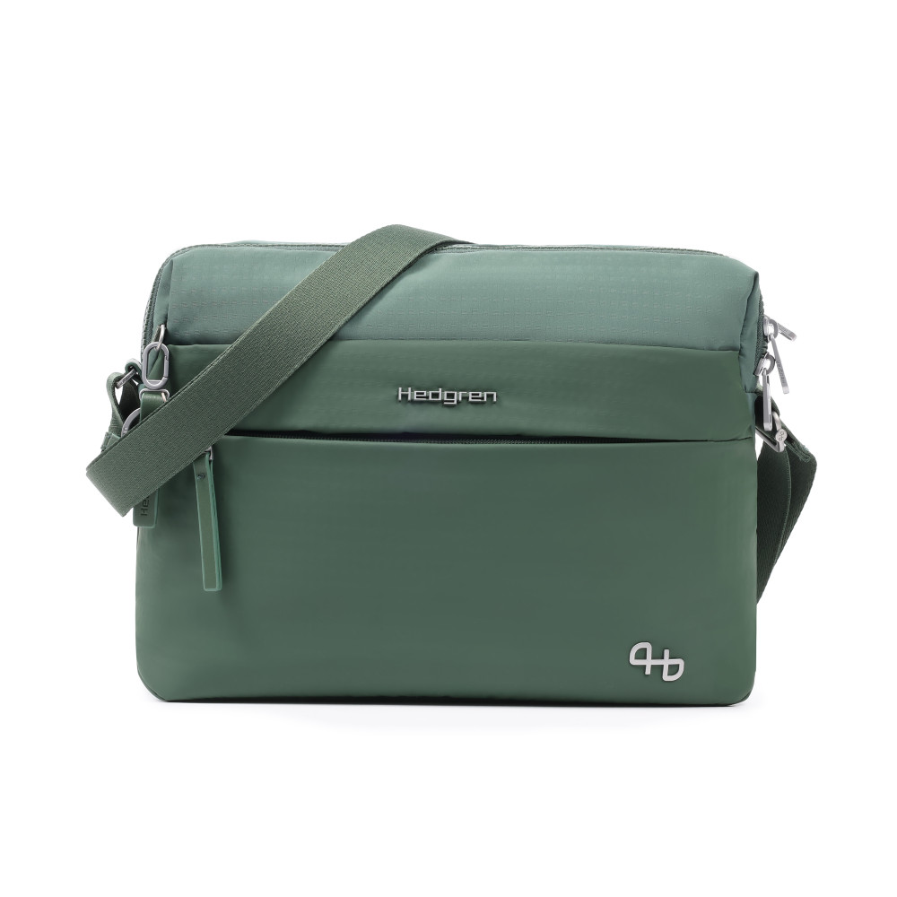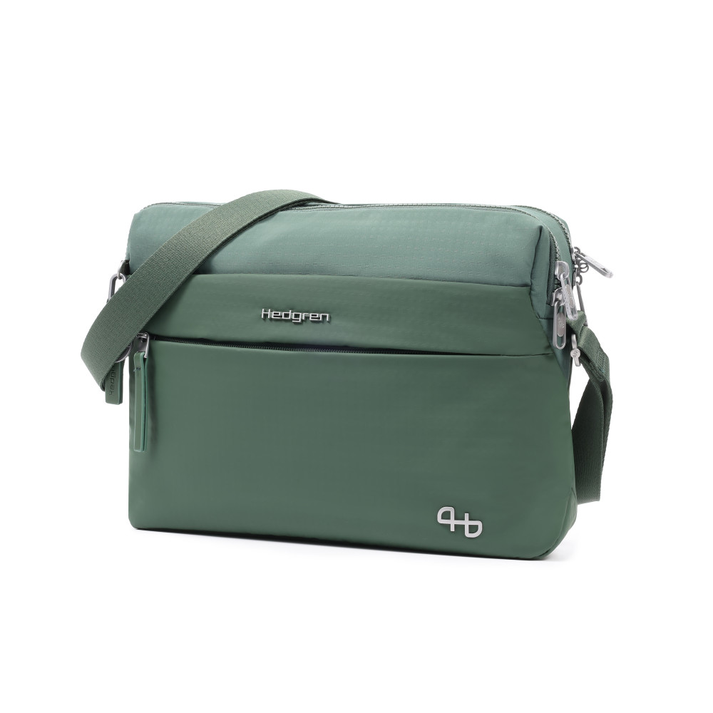Зручна, містка сумка через плече виготовлена з переробленої тканини в поєднанні з еко-шкірою. Оснащена двома основними відділеннями на блискавці, з відділом для смартфону, та додатковою кишенею на блискавці з RFID-захистом в першому, другий відділ передбачений для ноутбука 13" та документів формату А4, і тому на даному відділі блискавка, передбачає можливість розмістити навісний замок для гарантування додаткової безпеки цінних речей. На задній кишені виробу, передбачено втоплену блискавку, яка щільно прилягає до тіла, як додатковий засіб безпеки, також, задня кишеня, за потреби, завдяки блискавці перетворюється у планку для фіксації на телескопічну ручку валізи, що безумовно полегшує пересування під час подорожей.