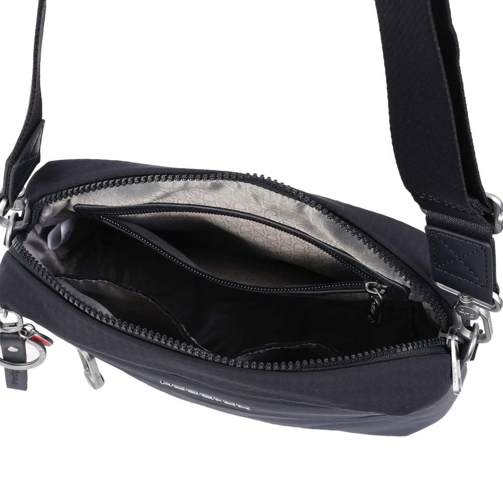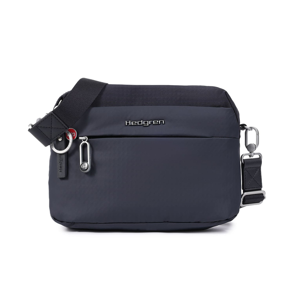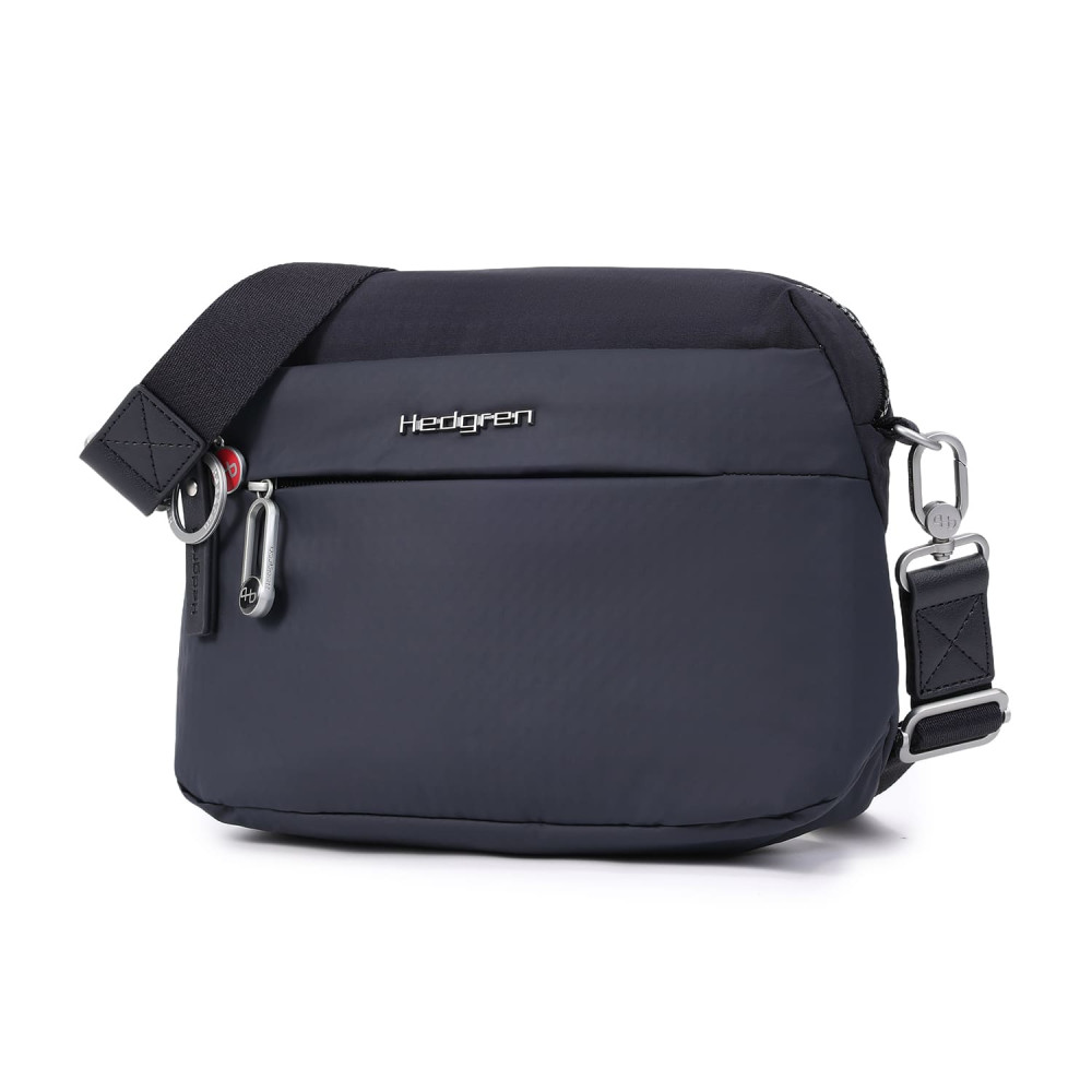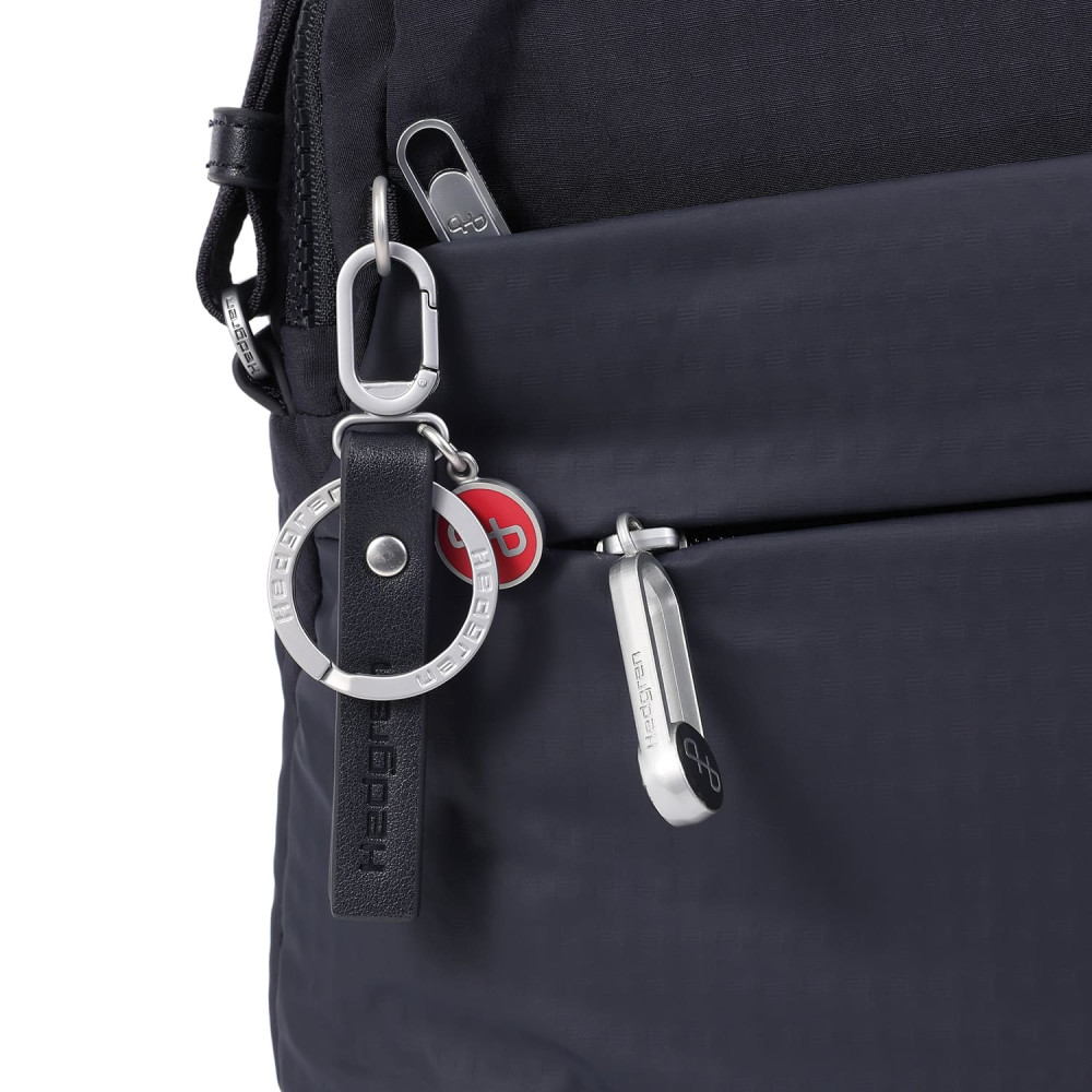 Зручна, містка сумка через плече виготовлена з переробленої тканини в поєднанні з еко-шкірою. Оснащена двома основними відділеннями на блискавці, з відділом для смартфону, та додатковою кишенею на блискавці з RFID-захистом в першому, другий відділ передбачений для ноутбука 13" та документів формату А4, і тому на даному відділі блискавка, передбачає можливість розмістити навісний замок для гарантування додаткової безпеки цінних речей. На задній кишені виробу, передбачено втоплену блискавку, яка щільно прилягає до тіла, як додатковий засіб безпеки, також, задня кишеня, за потреби, завдяки блискавці перетворюється у планку для фіксації на телескопічну ручку валізи, що безумовно полегшує пересування під час подорожей.