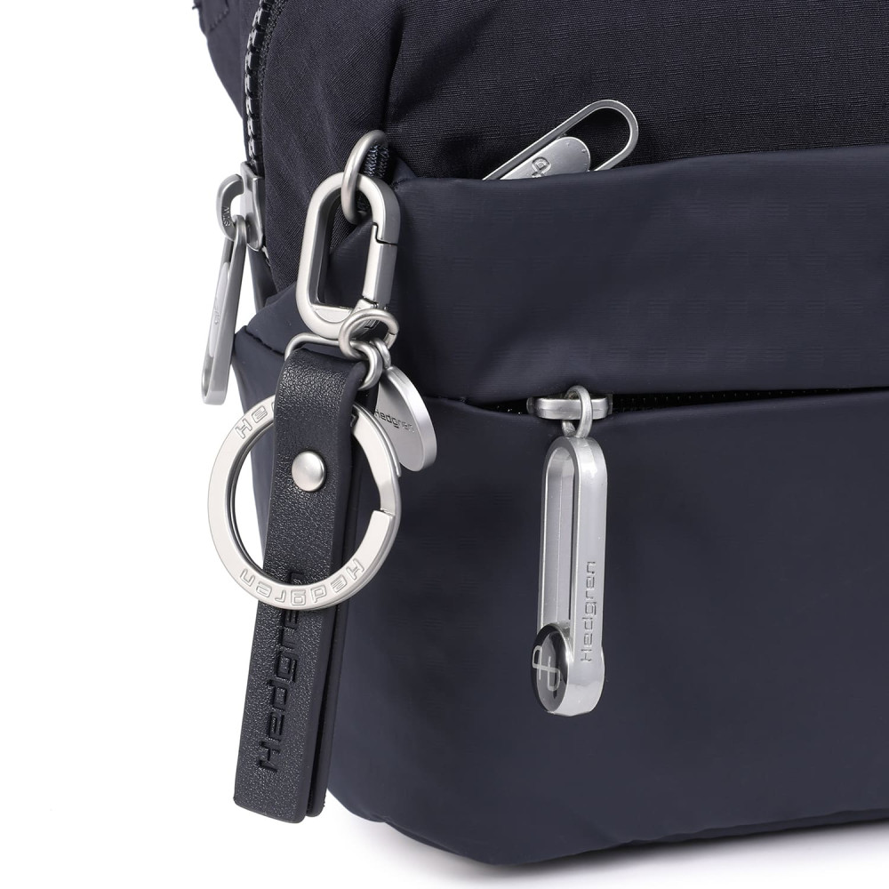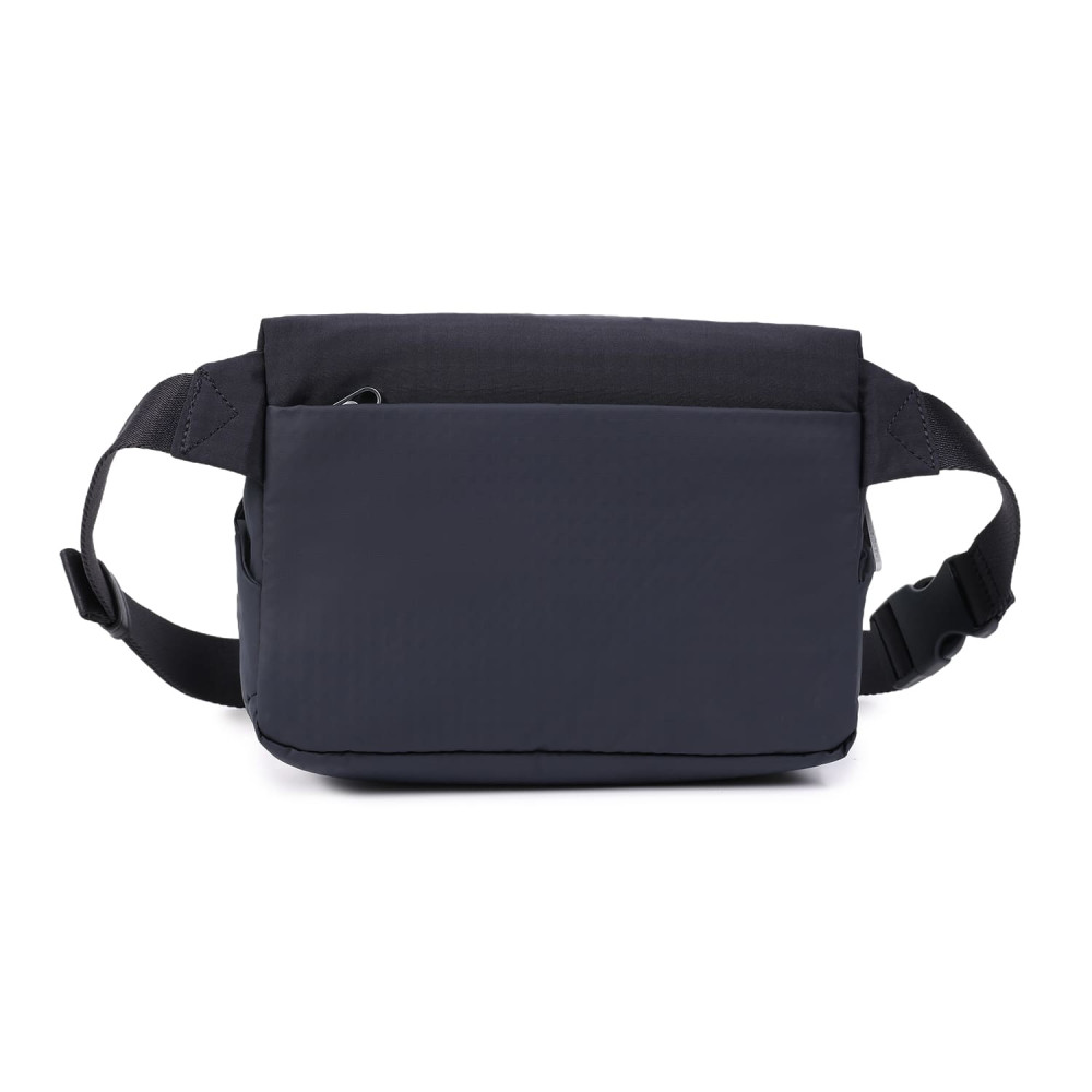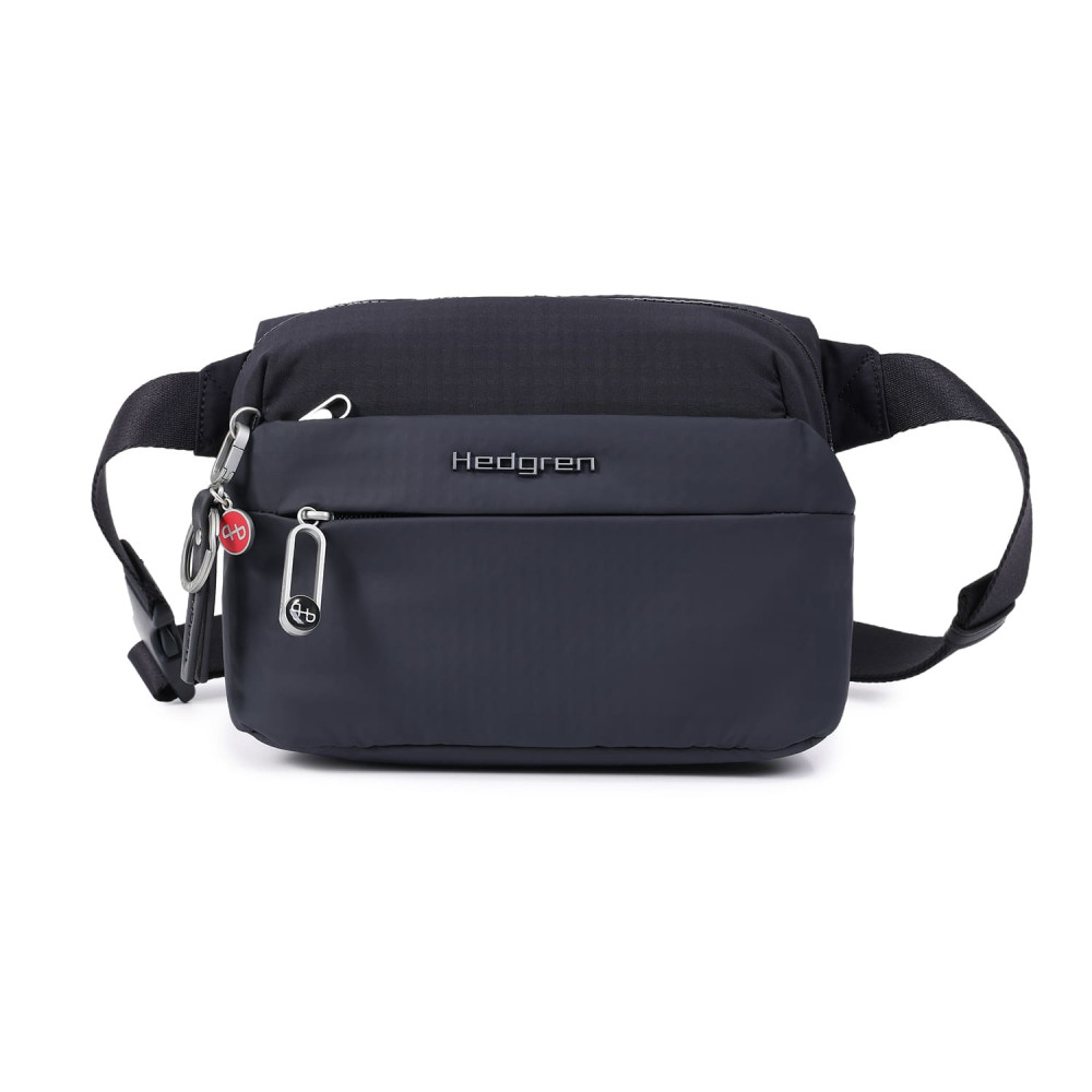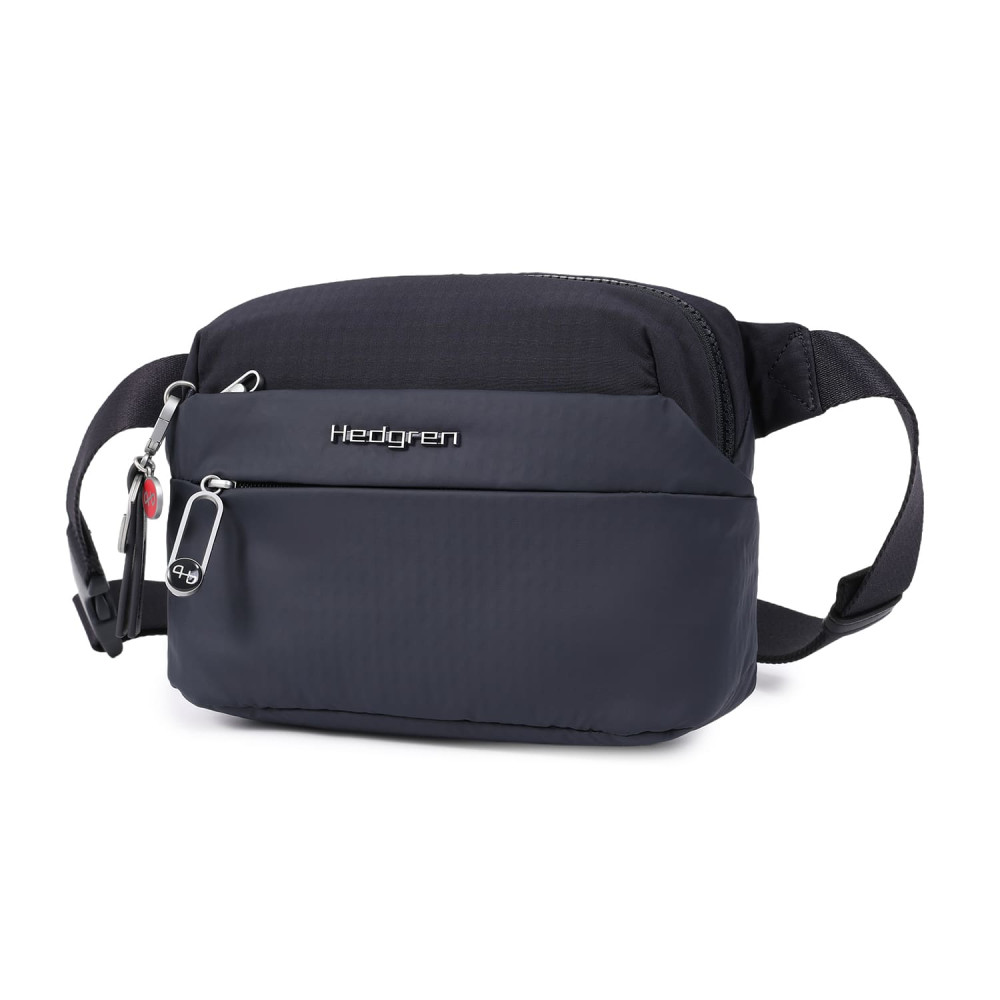 Зручна, компактна сумка на пояс виготовлена з переробленої тканини в поєднанні з еко-шкірою. Оснащена основним відділенням на блискавці з відділом для смартфону, та додатковою кишенею на блискавці з RFID-захистом. На задній кишені виробу, передбачено втоплену блискавку, яка щільно прилягає до тіла, як додатковий засіб безпеки. Має регульований по довжині ремінь та напівавтоматичну застібку.