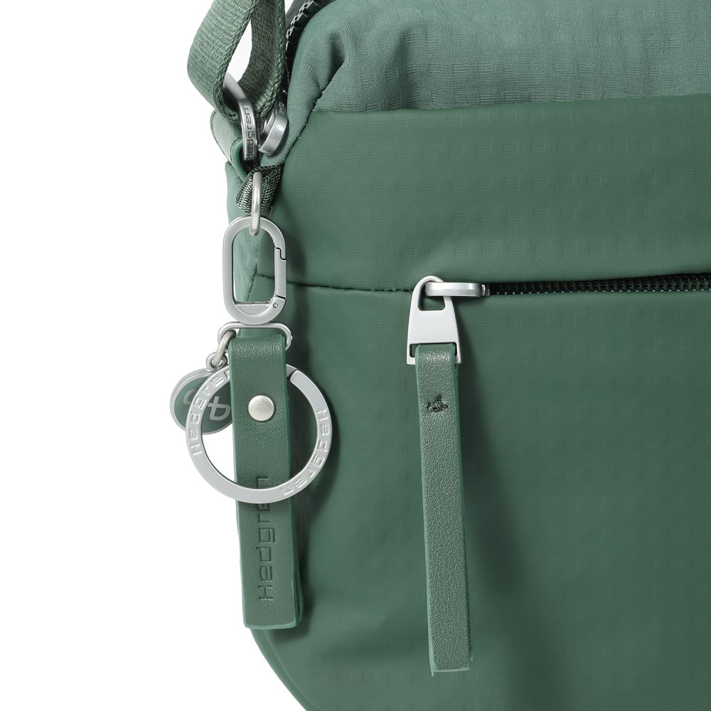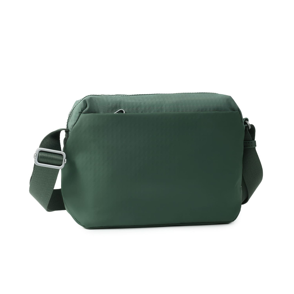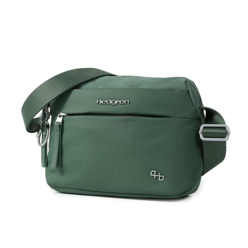 Зручна, компактна сумка через плече виготовлена з переробленої тканини в поєднанні з еко-шкірою. Оснащена основним відділенням на блискавці з відділом для смартфону, та додатковою кишенею на блискавці з RFID-захистом. На задній кишені виробу, передбачено втоплену блискавку, яка щільно прилягає до тіла, як додатковий засіб безпеки. Має регульований по довжині ремінь.