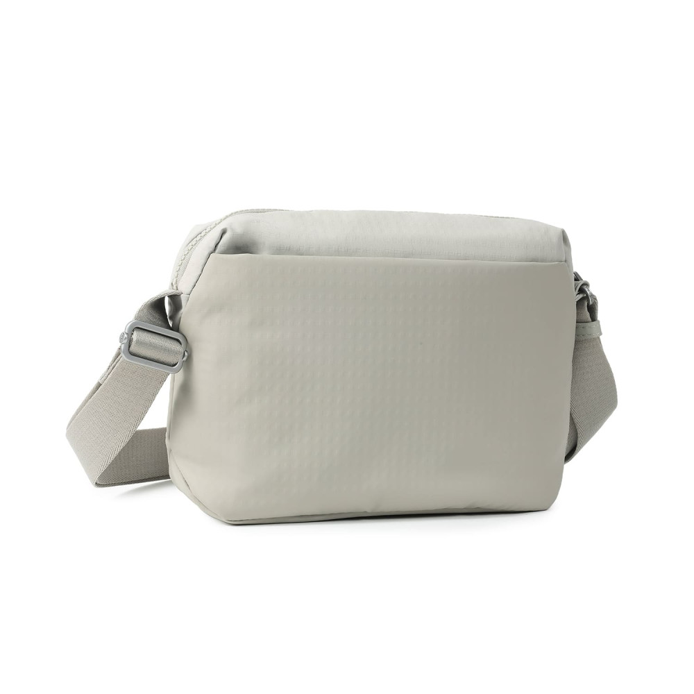 Зручна, компактна сумка через плече виготовлена ​​з переробленої тканини в поєднанні з еко-шкірою. Оснащена основним відділенням на блискавці з відділом для смартфону, та додатковою кишенею на блискавці з RFID-захистом. На задній кишені виробу, передбачено втоплену блискавку, яка щільно прилягає до тіла, як додатковий засіб безпеки. Має регульований по довжині ремінь.