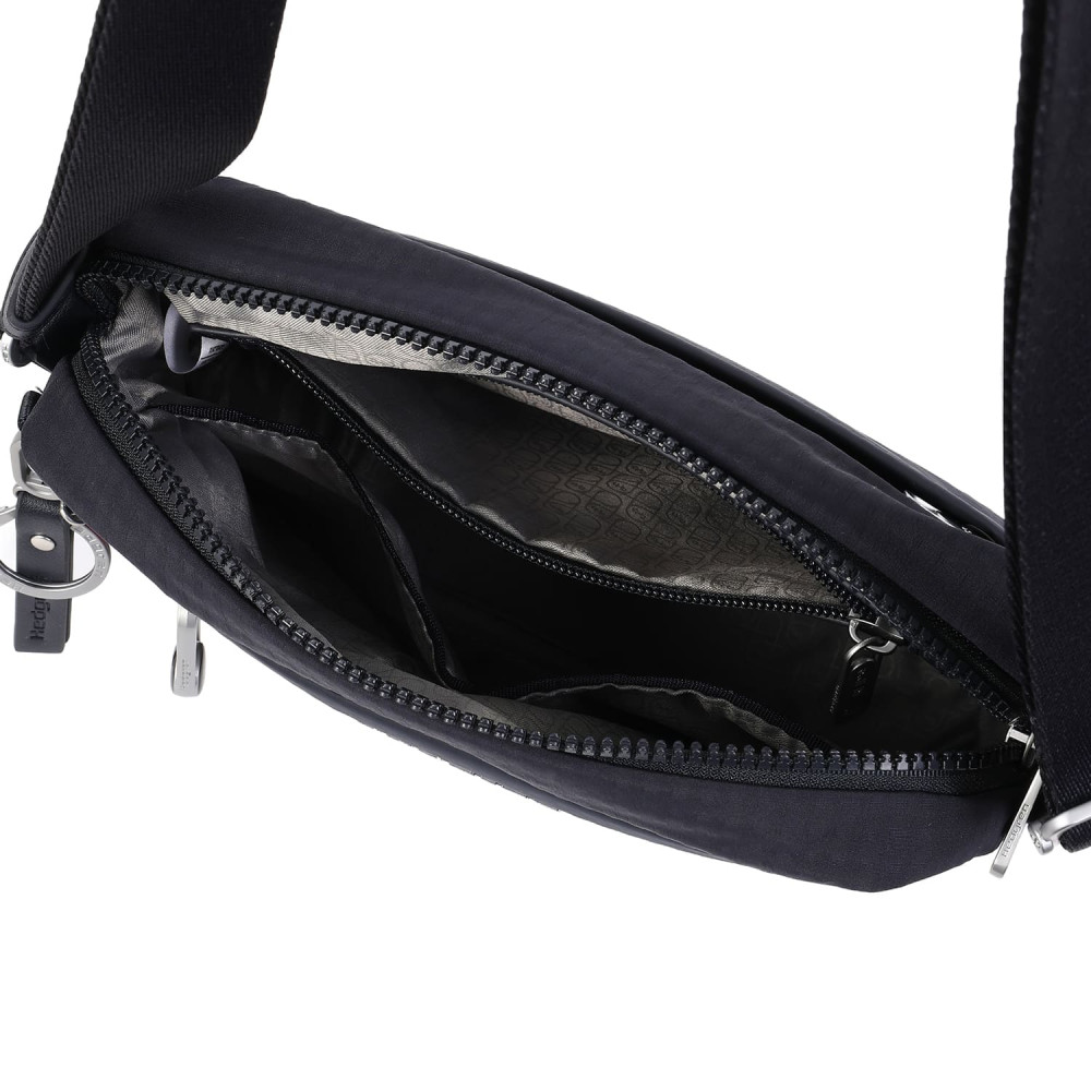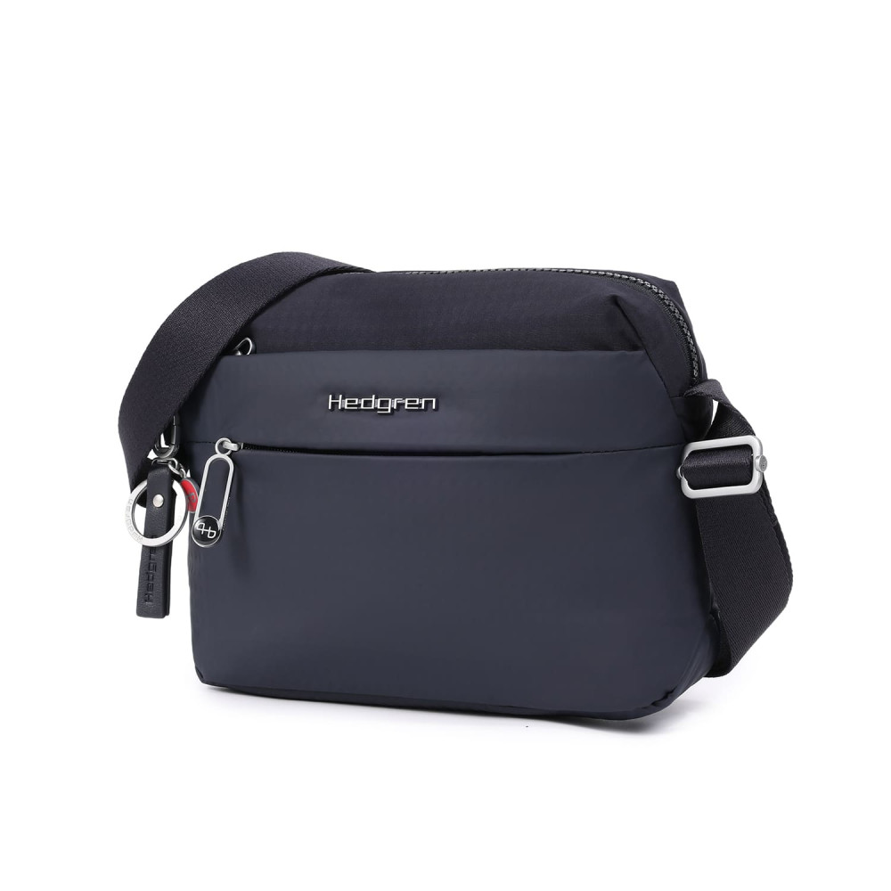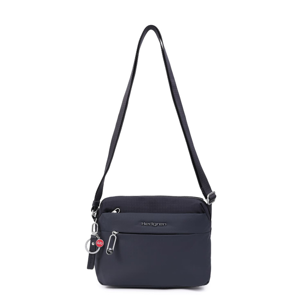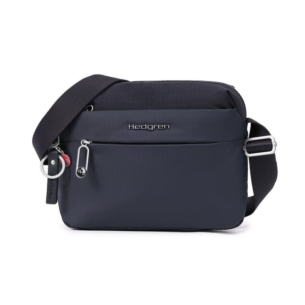 Зручна, компактна сумка через плече виготовлена з переробленої тканини в поєднанні з еко-шкірою. Оснащена основним відділенням на блискавці з відділом для смартфону, та додатковою кишенею на блискавці з RFID-захистом. На задній кишені виробу, передбачено втоплену блискавку, яка щільно прилягає до тіла, як додатковий засіб безпеки. Має регульований по довжині ремінь.