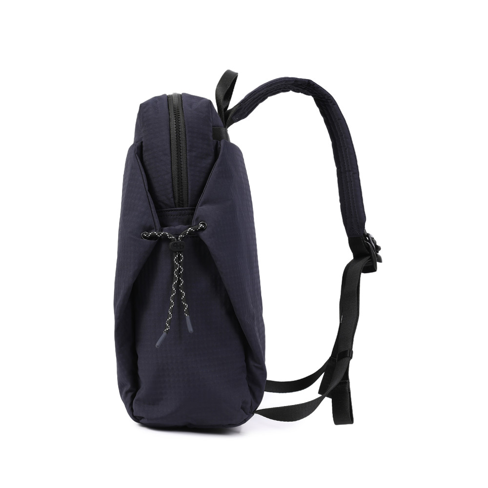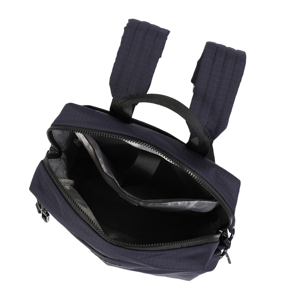 Універсальний рюкзак, виготовлений ​​з переробленої тканини. Оснащений основним відділенням на блискавці з відділом для ноутбука 14", документів формату А4 і додатковою кишенею на блискавці. Зовні оснащений кишенею, для предметів першої необхідності. На задній частині виробу присутній розумний рукав для кріплення на телескопічну ручку валізи, який за потреби може перетворитися в кишеню, завдяки блискавці. Також, за потребою, рюкзак розширюється і має бокові кишені для пляшки/парасольки. Оснащений м'якими плечовими ременями для зручності переміщення.