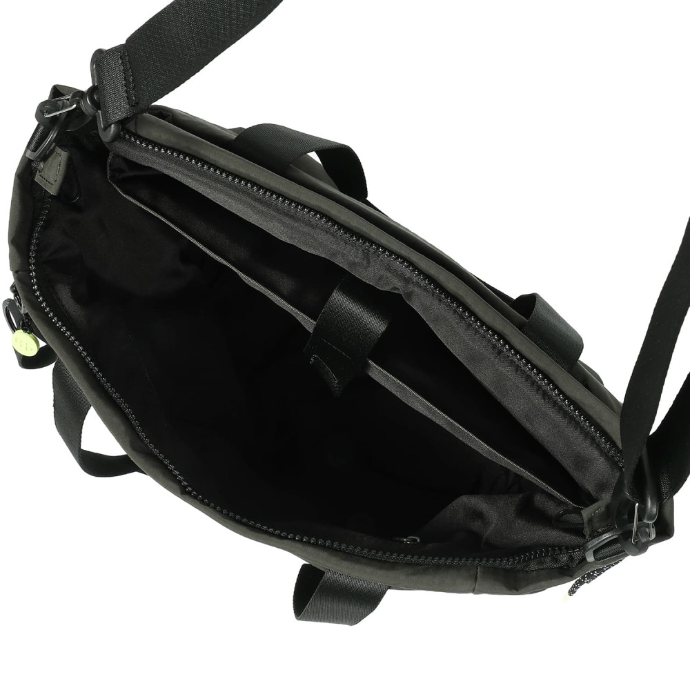 Сумка-кросовер оснащена містким основним відділенням, що закривається на золотисту блискавку. Усередині кишеня для смартфорна, гачок для ключів і додаткова внутрішня кишеня на блискавці. На бічних поверхнях є маленькі кишені зі стримуючими кутами на магнітних кнопках і блискавках. В комплекті знімний ремінь, який дозволить перетворити сумку-хобо в сумку через плече.