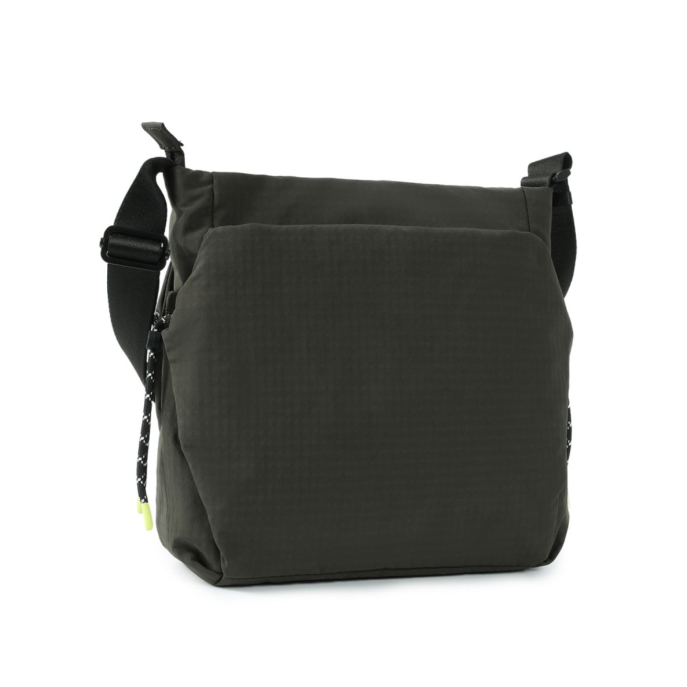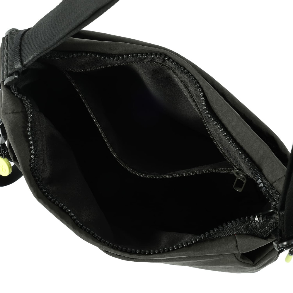 Зручна, сумка-кросовер. виготовлена ​​з переробленої тканини. Оснащена основним відділенням на блискавці з відділом для смартфону, та додатковою кишенею на блискавці. Зовні оснащена кишенями з обох боків, для предметів першої необхідності. На задній кишені виробу, передбачено втоплену блискавку, яка щільно прилягає до тіла, як додатковий засіб безпеки. Також, за потребою сумка розширюється і має бокові кишені для пляшки/парасольки. Сумку можна носити завдяки регульованому про довжені ременю.